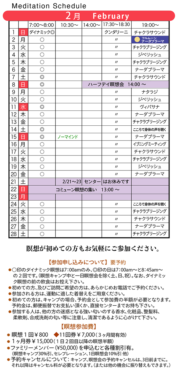 ■各イベントへの参加は、あらかじめお電話にてご予約をお願いします。 OSHOサクシン瞑想センター 03-5382-4734 Email Address : osho@sakshin.com ■ Last up date / November 26, 2025 |